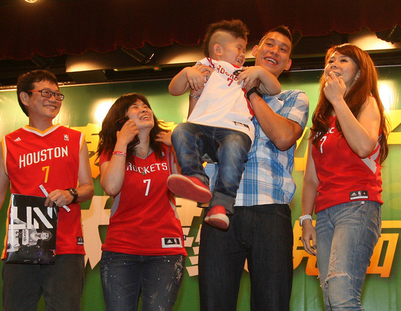 林書豪在見面會尾聲親切與球迷合影留念,并抱起一位3歲半的小球迷合影留念,這位小球迷可以算是林書豪的鐵桿粉絲,現(xiàn)場記者問他叫什么名字,他都直接回答以“林書豪”作答。(中國臺灣網 李帥)