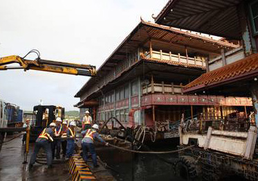 中國臺灣網(wǎng)8月16日消息 據(jù)臺灣媒體報道,閑置在高雄港長達13年的“海上皇宮”,今早6時在高雄船務(wù)公司的規(guī)劃下展開拖移作業(yè),工作人員先將第一部分船身纜繩切割,接著又調(diào)派2艘拖船前后牽引船身,從第3工作船渠碼頭緩慢的往旗津島方向移動,預(yù)估中午以前可以完成“海上皇宮”移動作業(yè)。
