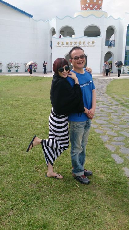蕭淑慎(左)與五叔在豐源國小前合照,心情愉快。(圖片來自臺媒)