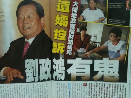 大埔地政官離奇亡遺孀控劉政鴻“有鬼”。(圖片來自臺媒)