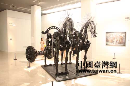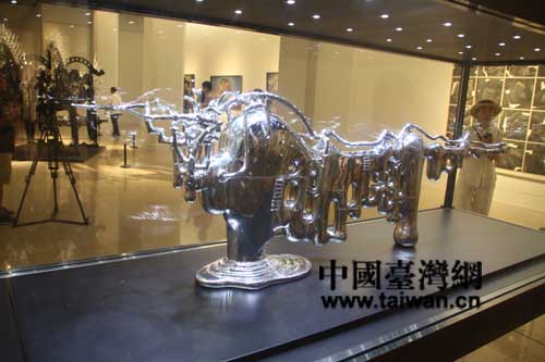 臺灣藝術家席時斌的雕塑“模型:阿濕波”以不銹鋼、銅、木料、等制作(中國臺灣網(wǎng) 蕪同 攝)