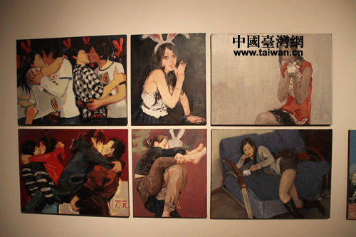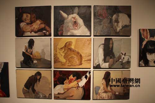 大陸畫家袁文彬作品“兔子兔子”之二(中國(guó)臺(tái)灣網(wǎng) 蕪?fù)?攝)