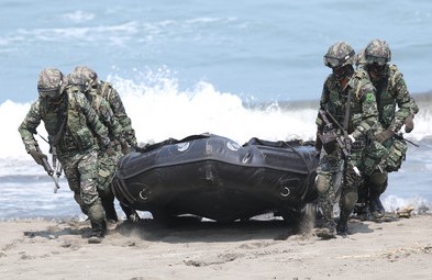臺軍志愿役海軍陸戰(zhàn)隊軍事操演。(圖片來自臺媒)