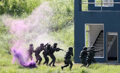 臺軍志愿役海軍陸戰(zhàn)隊軍事操演。(圖片來自臺媒)