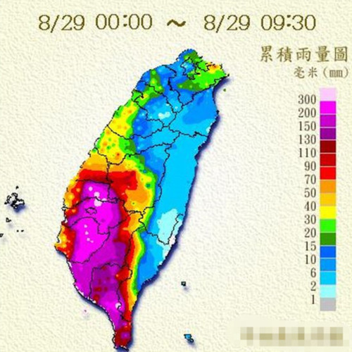 從今天凌晨到9點(diǎn)為止,這些縣市范圍內(nèi)許多地方的累積降雨都已超過300毫米,其中嘉義大林達(dá)465毫米、屏東縣春日鄉(xiāng)450毫米、云林縣斗南鎮(zhèn)414毫米。