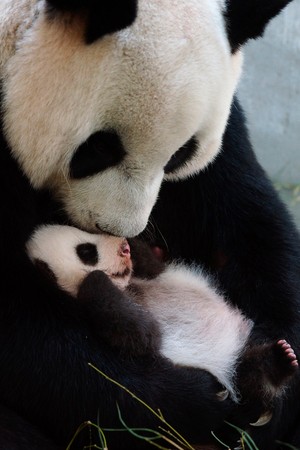 圓仔與媽媽面對面躺著,這樣圓圓可以隨時抱起圓仔,圓仔餓了,也可以馬上找到喝奶的方向,這是牠們母子之間,最有默契的相處姿勢。工作人員說,“圓圓照顧圓仔是無微不至,今天早上我們秤重的紀(jì)錄是顯示圓仔增重到3162.6克!
