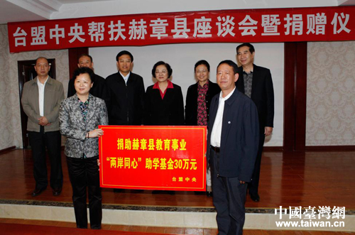臺(tái)盟向赫章捐贈(zèng)助學(xué)金,左為臺(tái)盟中央社會(huì)服務(wù)部部長(zhǎng)唐涓,右為赫章縣委書(shū)記黃光江。(中國(guó)臺(tái)灣網(wǎng)發(fā) 畢磊 攝)