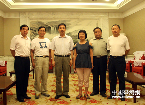9月7日,新疆生產(chǎn)建設(shè)兵團(tuán)黨委常委、副政委王繼亮(左三)在烏魯木齊會(huì)見參訪團(tuán)一行。(中國臺(tái)灣網(wǎng) 王偉 攝)