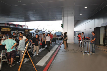 報(bào)道稱,航警局擔(dān)心屆時(shí)會(huì)出現(xiàn)媒體推擠,及大批支持者包圍的混亂情況,已預(yù)先將現(xiàn)場(chǎng)劃分為2個(gè)區(qū)域,將采訪區(qū)與王金平演講區(qū)隔開,并架設(shè)講臺(tái)供各大媒體擺放麥克風(fēng)。(中國(guó)臺(tái)灣網(wǎng) 何建峰)