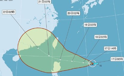 天兔臺(tái)風(fēng)持續(xù)增強(qiáng),周五、六最接近臺(tái)灣(圖片來(lái)自臺(tái)媒)
