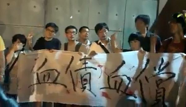 學(xué)生深夜突襲馬英九寓所,潑紅漆、灑冥紙高喊“暴政殺人,血債血償”等口號(hào)。(圖片來自臺(tái)媒)