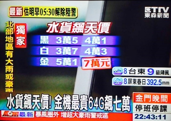 iPhone5S水貨落地臺(tái)灣,64G金色版開(kāi)出天價(jià)。(圖片來(lái)自東森新聞)