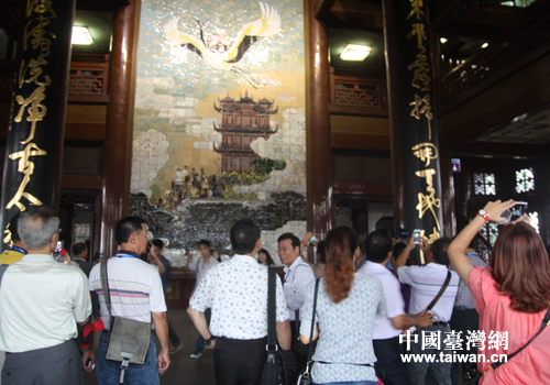 兩岸記者走進(jìn)黃鶴樓,參觀黃鶴壁畫。(中國臺灣網(wǎng) 段雯婷 攝)。