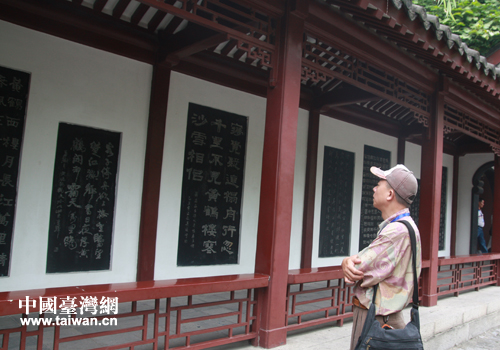 黃鶴樓內(nèi)刻有的古詩。(中國臺灣網(wǎng) 段雯婷 攝)