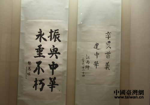 辛亥革命紀(jì)念館郁慕明、江丙坤題字。(中國臺灣網(wǎng) 段雯婷 攝)