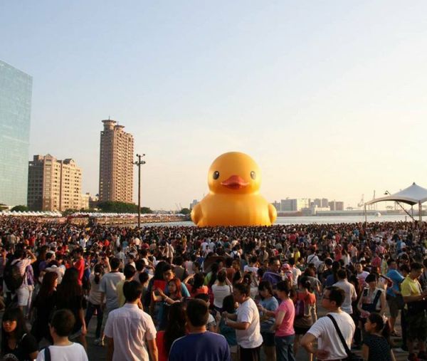 小黃鴨在高雄港展出,不到一個星期已經(jīng)有40萬人前往參觀。(圖片來自臺媒)
