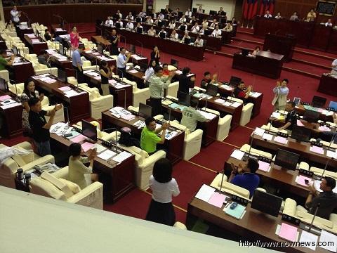 郝龍斌原先預(yù)定下午2點(diǎn)進(jìn)行施政報(bào)告,但遭到民進(jìn)黨阻擾,直到3點(diǎn)40分左右才走上臺。