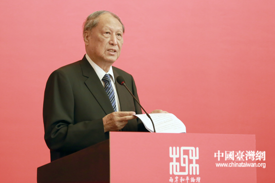 10月11日,上海,全國臺灣研究會會長成思危在首屆兩岸和平論壇上致辭。(中國臺灣網(wǎng) 田云鵬 攝)