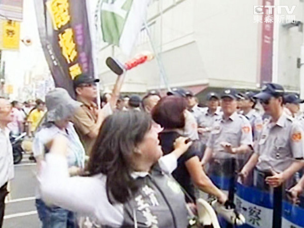據(jù)報(bào)道,馬英九9月26日參訪臺灣云林科大,就有數(shù)百名民進(jìn)黨支持者在云科大校門對面,高舉抗議布條,更有激動群眾朝車隊(duì)丟藍(lán)白拖,當(dāng)時(shí)警方出動數(shù)百人在場戒備,現(xiàn)場一度推擠。面對丟鞋,警方首次拉起大片“捕鞋網(wǎng)”攔截,但還是有幾只拖鞋突破防護(hù)網(wǎng),但幸好沒有沖突并未擴(kuò)大。(中國臺灣網(wǎng) 朱煉)