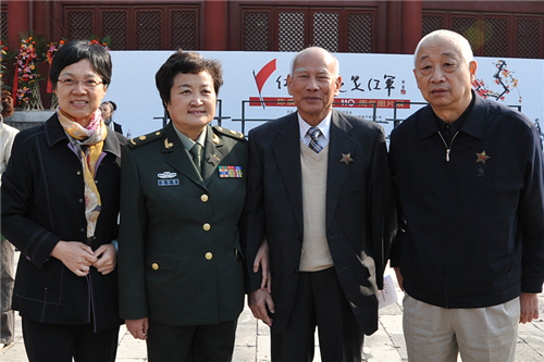 照片中人物從右至左為:陳賡之子陳知建、黃埔軍校同學(xué)會(huì)會(huì)長林上元、陳賡之女陳知進(jìn)、黃埔軍校同學(xué)會(huì)副秘書長鄭琴(主辦方供圖)