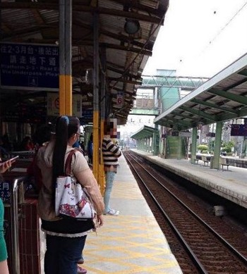 男子光屁股站在中壢火車站月臺。(臺媒圖)