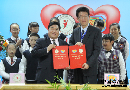 中國臺灣網(wǎng)10月26日沁陽消息 10月26日下午,河南省沁陽市實驗小學校長張立強與臺灣曹公小學校長彭連煥代表兩校共同簽署了締結(jié)友好姊妹學校備忘錄,兩岸小學正式締結(jié)為友好姊妹學校。這是河南省內(nèi)首所與臺灣小學締結(jié)友好關(guān)系的學校。