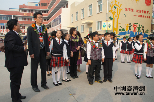 臺灣曹公小學校長彭連煥帶領(lǐng)該校師生代表參訪河南省沁陽市實驗小學。(中國臺灣網(wǎng) 扶海濤 攝)