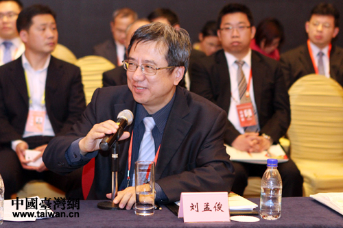 10月26日下午,臺(tái)灣中華經(jīng)濟(jì)研究院經(jīng)濟(jì)展望中心主任劉孟俊在第九屆兩岸經(jīng)貿(mào)文化論壇“推進(jìn)兩岸經(jīng)濟(jì)科技合作”專題研討會(huì)中做主題演講。(中國(guó)臺(tái)灣網(wǎng) 陳佳慧 攝)