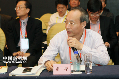 10月26日下午,中央臺(tái)辦特邀專家肖華在第九屆兩岸經(jīng)貿(mào)文化論壇“推進(jìn)兩岸經(jīng)濟(jì)科技合作”專題研討會(huì)中做主題演講。(中國(guó)臺(tái)灣網(wǎng) 陳佳慧 攝)