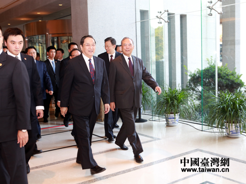 2013兩岸企業(yè)家紫金山峰會4日下午在江蘇南京開幕。中共中央政治局常委、全國政協(xié)主席俞正聲出席開幕式。(中國臺灣網(wǎng) 王偉 攝)