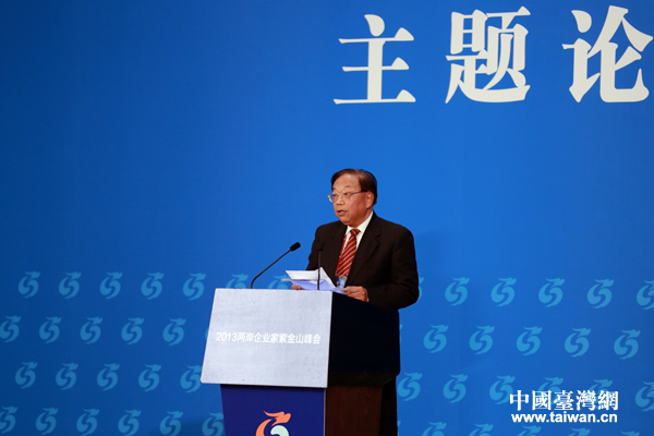 2013兩岸企業(yè)家紫金山峰會主題論壇5日上午在南京紫金山莊舉行,峰會成長型和中小企業(yè)合作推進小組召集人(大陸)蔣以任出席論壇并演講。(中國臺灣網(wǎng) 王偉 攝)