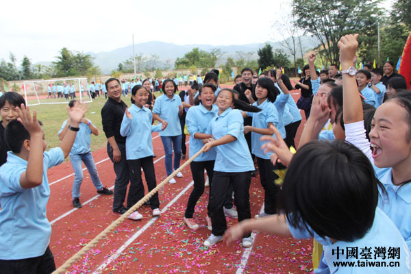 剪彩儀式后舉行的趣味運動會上,頂新基金會工作人員與學(xué)生們同樂(中國臺灣網(wǎng) 蕪?fù)?攝)