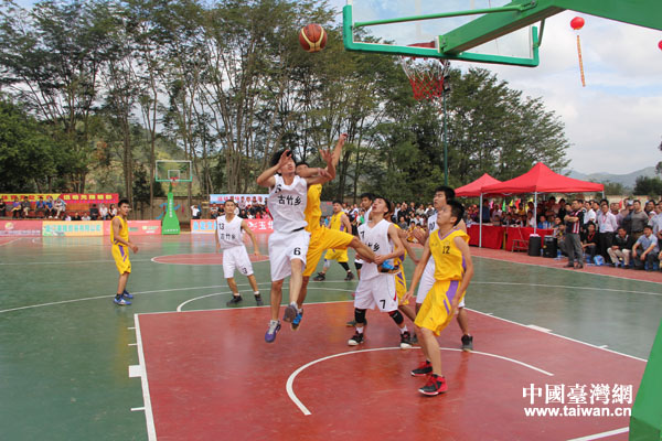 剪彩儀式后,第五屆“土樓杯男子藍球賽”在新建成的塑膠藍球場開賽(中國臺灣網(wǎng) 蕪?fù)?攝)