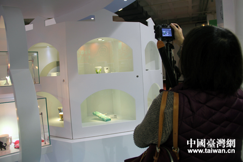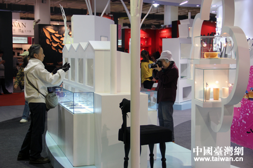 拍照,是參觀者在臺灣文創(chuàng)精品館最標(biāo)準(zhǔn)的動作。(中國臺灣網(wǎng) 楊麗 攝)