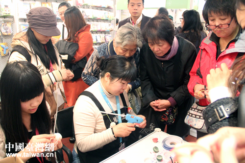 埔里造紙龍已經(jīng)不是第一次來文博會,展位前依然圍滿了前來體驗其奇妙工藝的大陸民眾。(中國臺灣網(wǎng) 楊麗 攝)