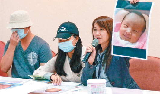 沈媽媽昨在北市議員簡(jiǎn)余晏陪同下控訴,女兒緗緗今年八月出生后,因她母乳量不足,購買這款奶粉給女兒喝,一天約喝八次奶。但緗緗九月開始發(fā)燒,十月十五日發(fā)燒抽搐,送國(guó)泰醫(yī)院急救,雖一度退燒,但隔天凌晨再因呼吸急促病危,轉(zhuǎn)馬偕醫(yī)院急救。