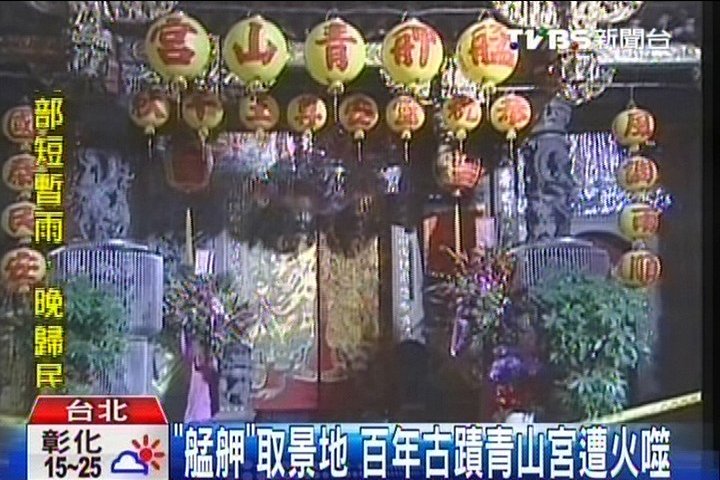 電影《艋舺》里取景場地就是在青山宮,因為有將近160年歷史,被臺灣列為3級古跡,卻不幸發(fā)生火警。雖然最近正準(zhǔn)備出巡的神轎也遭受波及,廟方也表示會照常舉行,所幸這場火并沒有造成人員傷亡,算是不幸中的大幸。(中國臺灣網(wǎng) 周劍)