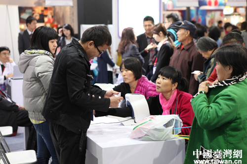 眾多參展者在醫(yī)美館做健檢咨詢。(中國臺灣網 發(fā))
