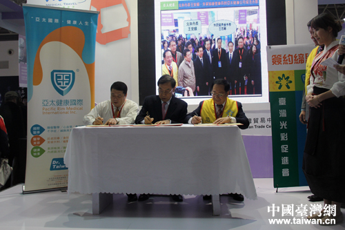 展會上,部分參展業(yè)者簽署合作協(xié)議。(中國臺灣網 發(fā))