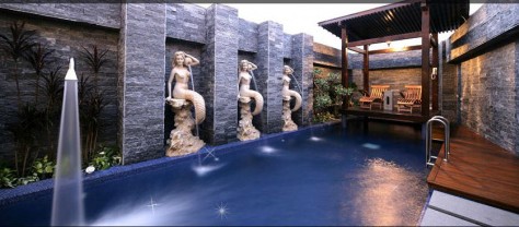 盧柚升跳入杜拜風(fēng)情時(shí)尚旅館房間內(nèi)附設(shè)的水池中而受傷。(臺媒圖)