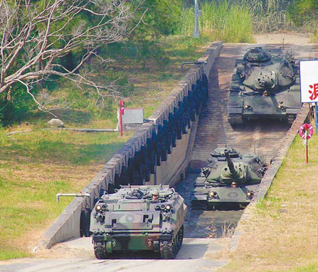 測(cè)試中的CM21裝甲運(yùn)兵車(前)。(臺(tái)灣《中國(guó)時(shí)報(bào)》資料照)