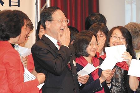 江宜樺受到現(xiàn)場學長姐、學弟妹熱烈歡迎,搶著合照,江宜樺來者不拒,并逐桌敬酒,最后還與同班同學上臺合唱,儼然是最受矚目焦點。