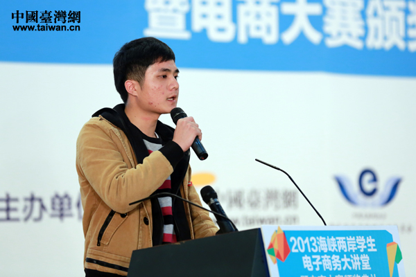 20日下午,由中國臺灣網(wǎng)(www.com3y.cn)、海峽兩岸互聯(lián)網(wǎng)交流委員會、中華臺灣MIT正品推廣協(xié)會主辦的“2013海峽兩岸學生電子商務大講堂暨電商大賽頒獎典禮”在京舉行。圖為大陸區(qū)總決賽第一名獲得者分享參賽體會。(中國臺灣網(wǎng) 于斯文 攝)