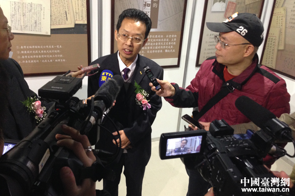 《兩岸關(guān)系》雜志社法人代表、副社長(zhǎng)鐘河林接受兩岸媒體采訪。(劉麗華攝)