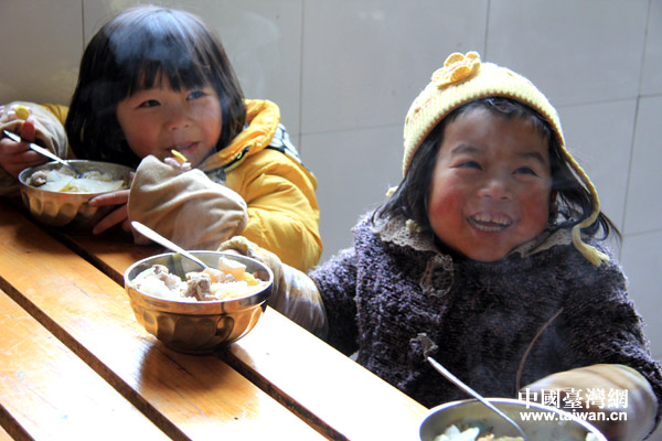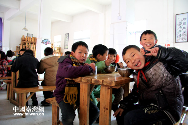 冷水鎮(zhèn)小學經(jīng)過三年教育實驗,學生精神面貌發(fā)生巨大變化,圖為學生們在食堂愉快就餐。(中國臺灣網(wǎng) 李徽 攝)