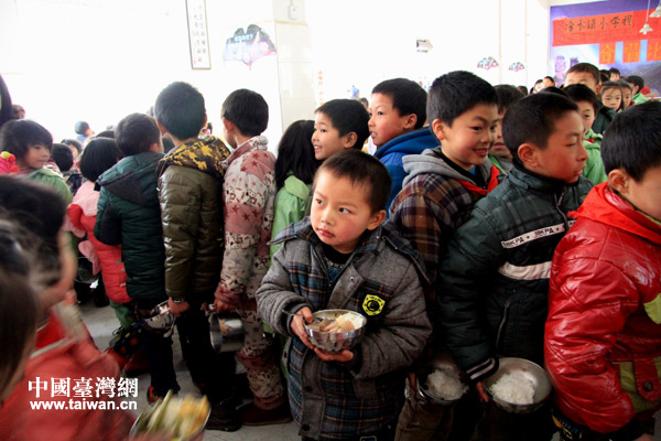 冷水鎮(zhèn)小學經(jīng)過三年教育實驗,學生精神面貌發(fā)生巨大變化,圖為學生們在食堂就餐。(中國臺灣網(wǎng) 李徽 攝)