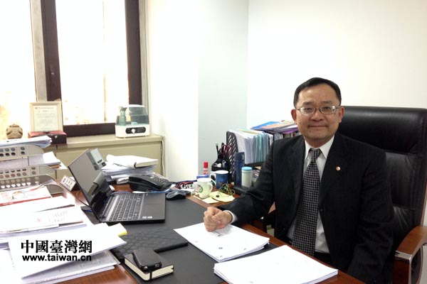 臺(tái)灣貿(mào)易中心北京代表處首席代表吳政典在辦公地點(diǎn)接受中國(guó)臺(tái)灣網(wǎng)專訪(中國(guó)臺(tái)灣網(wǎng) 李徽 攝)