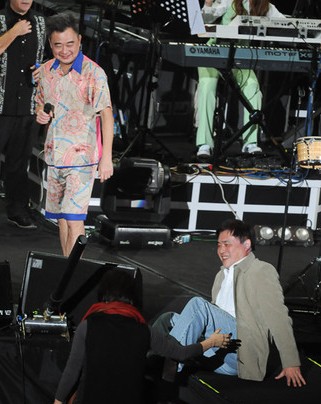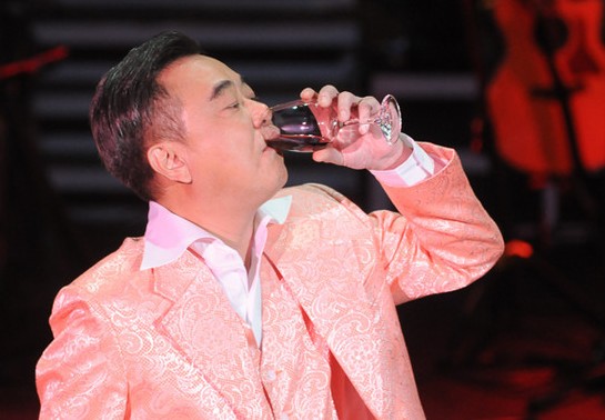 陳升開(kāi)唱,一邊接受觀眾遞上的紅酒。(臺(tái)媒圖)