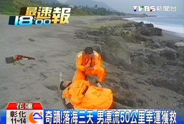 落海的曾連發(fā)家住花蓮,目前和女友同住,已經(jīng)有2個小孩,現(xiàn)在又即將迎接第3位新生兒。他為了貼補家計,3日凌晨到花蓮溪捕鰻苗,沒想到卻不慎在出海口落海,幸好“當(dāng)時抓到浮木!”但由于東北季風(fēng)影響,在海上漂流長達(dá)60小時,最后被打到岸上時已經(jīng)“累到?jīng)]力”,只能癱軟在沙灘上。