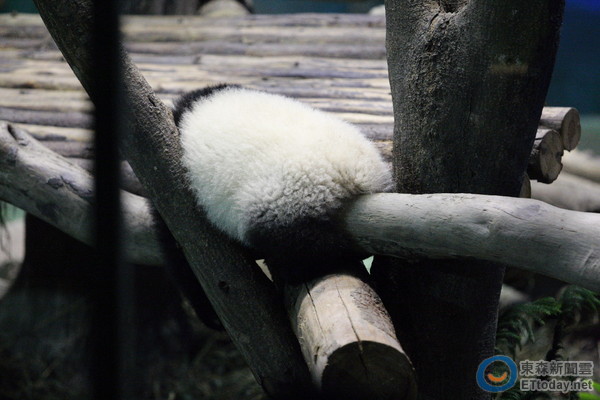 “圓仔”吃飽后沒幾分鐘就“電力耗盡”,9時40左右倒地變成趴趴熊,讓遲來的游客只能看它的白屁屁。接下來幾小時,圓仔時睡時醒,但每次醒來都不斷放電賣萌,咬腳、揉眼睛……每次都讓游客一陣喧嘩,頻按快門。